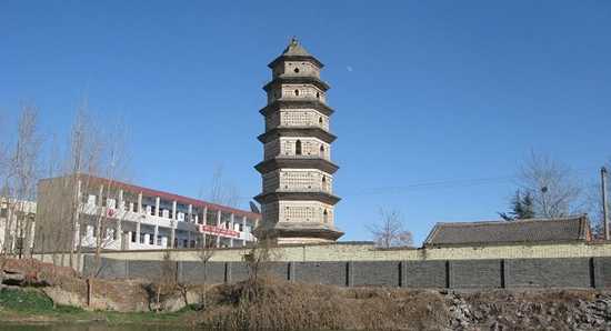 在济源市区西北2公里延庆寺内。北宋景祐三年(1036年)建。塔门南向,平面六角形,为七层密檐砖塔,高约28米。塔外各层壁面嵌砌佛像雕砖或辟设圭形塔门。塔檐由简单的叠涩砖层组成,塔身轮廓略呈抛物线形,巍峨挺拔,优美壮观。内为六角形塔心室,室内有《济源县龙潭延庆禅院新修舍利塔记》宋碑一通,书法遒美