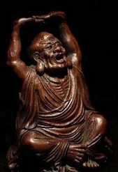 半托迦尊者——探手罗汉,安悠自在、呵欠伸腰 、神志灵通、自得其乐。半托迦尊者驻三十三天花藏。双手结印(也有右手结说法印,左手执经者)。为注荼半托迦之兄。幼时体弱多病,带到祗陀林。世尊为其诵真语,恢复体力。后来通达四吠陀,充任导师。又遇世尊,授于具足戒。白天唪诵,夜晚静禅,获阿罗汉果。若依此尊,可皈依三宝,健康长寿。