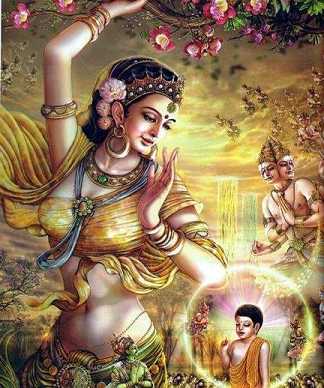 佛陀释迦牟尼的母亲摩耶夫人是我们已知的最完美的女性,她具有三十二种功德相:出身尊贵,种族清净,德行无缺,端正无比,身体容貌上下相称,从未生育,心常随顺一切善事,无有邪心,心无所畏、无谄曲、无诳诈、无镇恚,无嫉妒、无悭吝、能忍辱、有惭愧,无有女人过失,孝顺父母,心向丈夫,能生一切诸功德等。摩耶夫人在蓝毗尼园的无忧树下完成了一个母亲最光辉的时刻后,世界佛教史就开始了崭新的篇章,而摩耶夫人从怀孕到生下释迦世尊的所有细节,都被历史赋予了不同凡响的意义。从此,佛陀改变了人类信仰的格局,而佛母的操行和功德却将人性中至善的理想追求变成现实。